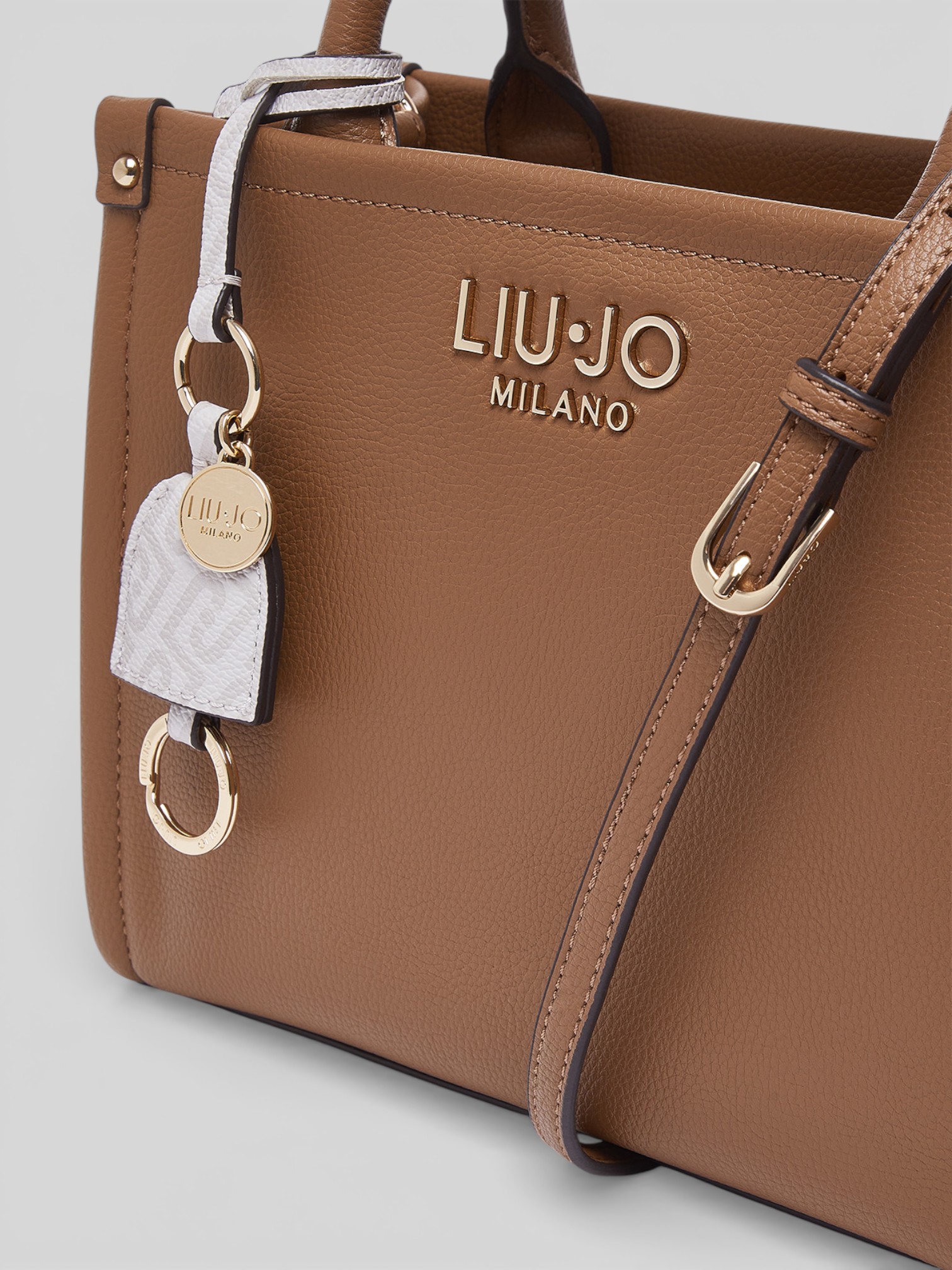Eleganza contemporanea e dettagli ricercati definiscono questa borsa a mano Liu Jo, pensata per accompagnare con stile sia look quotidiani che outfit più raffinati. La stampa effetto bottalato dona carattere alla superficie, mentre il charm removibile aggiunge un tocco distintivo.