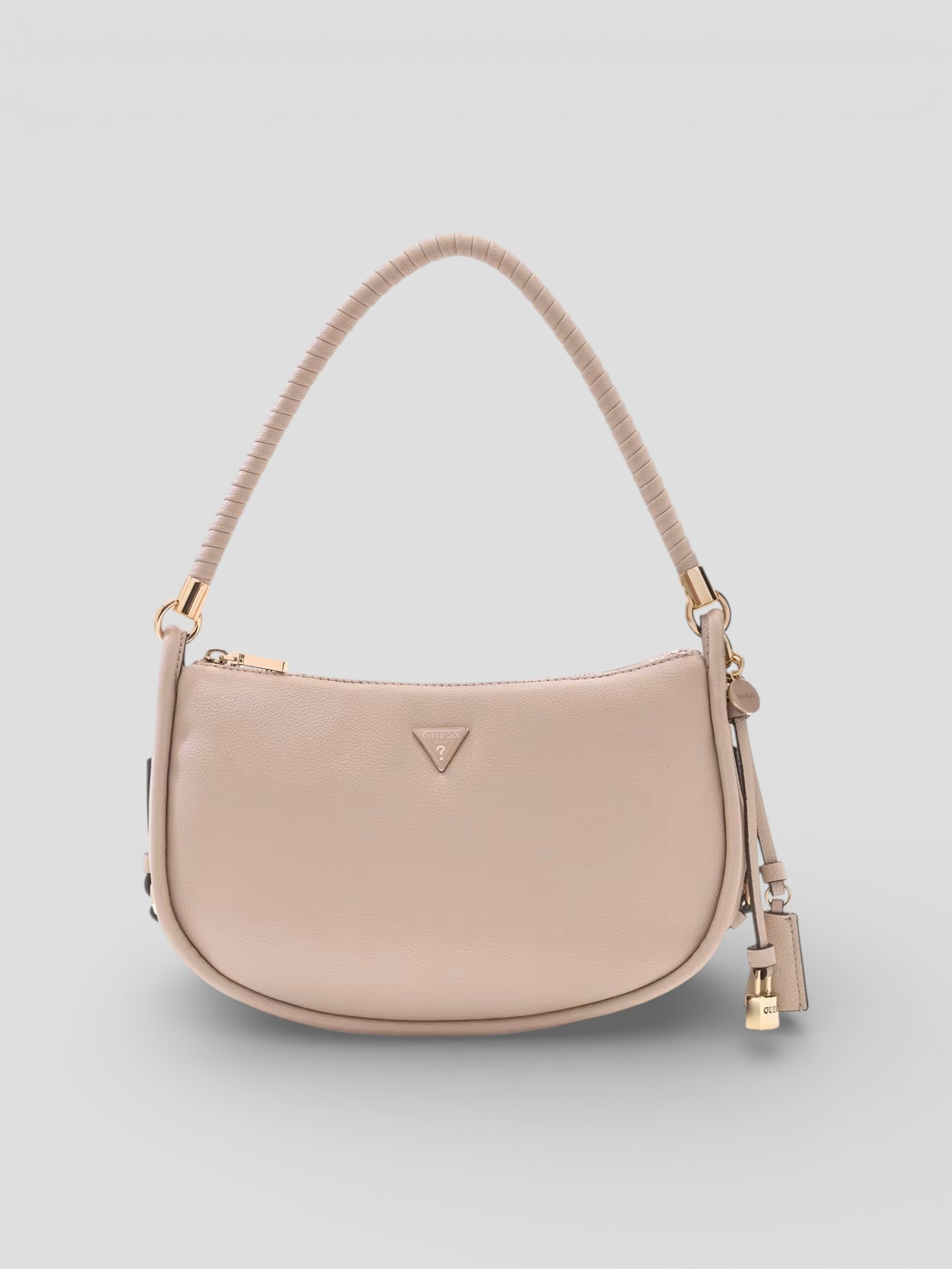 Borsa a spalla Guess in poliuretano testurizzato con patta magnetica e dettagli borchiati. Compatta, moderna e ricca di carattere.