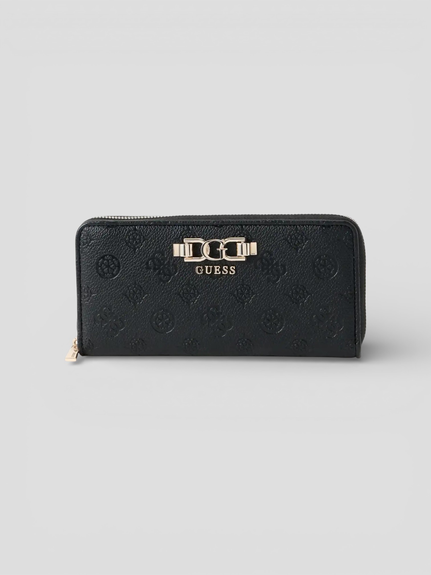 Borsa a tracolla Guess in similpelle con dettagli dorati e tasca esterna con zip. Compatta, elegante e perfetta per ogni occasione.