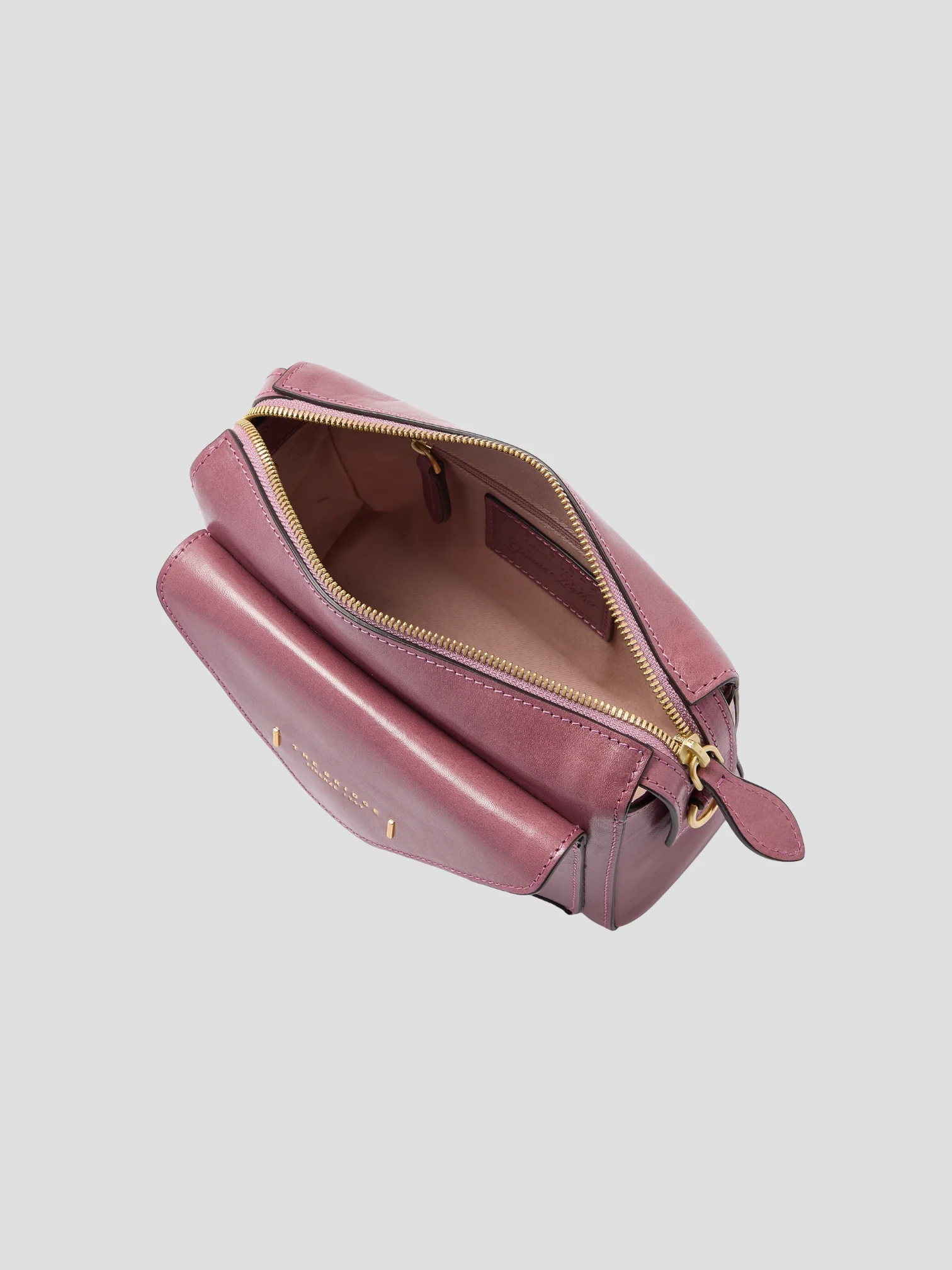 Borsa a tracolla in pelle modello camera case con zip e tasca frontale, compatta e funzionale.